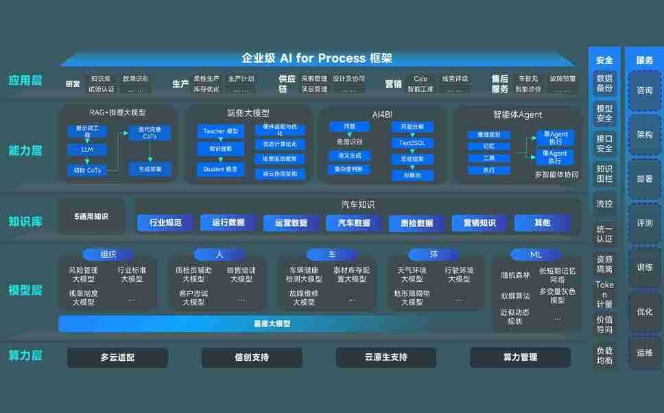 端到端的一站式AI工作空间深度融合了从企业战略规划到日常经营的全流程业务板块,,,,定向解决车企内部领域多、、部门多、、、、链条长、、、、场景碎片化等难题,,支持车企快速构建以AI为核心的生产力写作体系,,,,实现任务执行与AI能力的无缝集成与交互